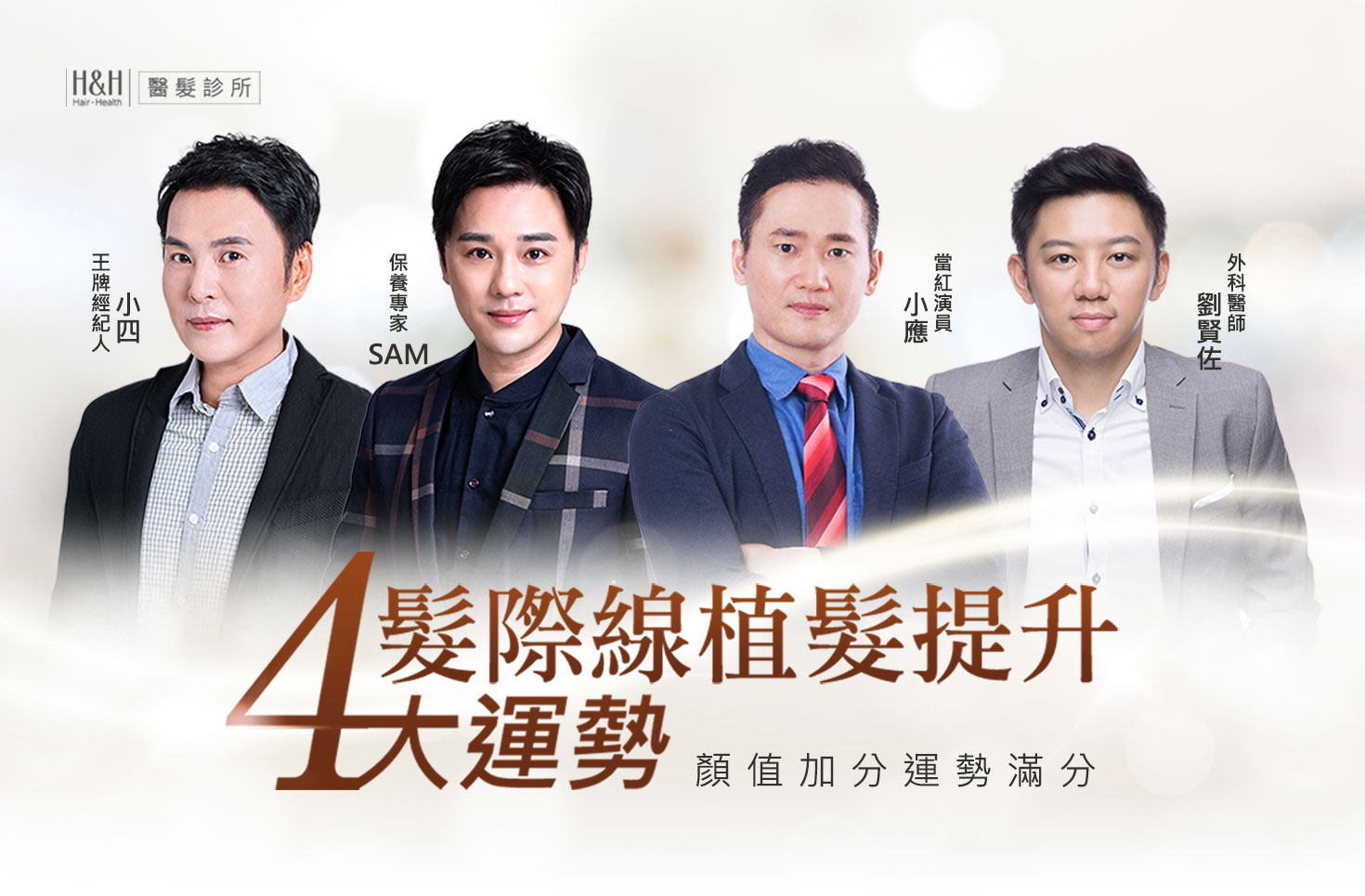 曾在90年代紅遍港台地區的唱跳偶像團體豹小子成員之一-小四,團體解散不當歌手後轉而成為美妝老師經紀人,雖然鮮少在螢光幕前,但小四還是在意隨年紀後退的髮際線,以及鬢角過短的遺憾,希望透過韓式髮際線植髮手術改善這兩大問題,就算在螢光幕後也能提升好形象、減少蒼老感。